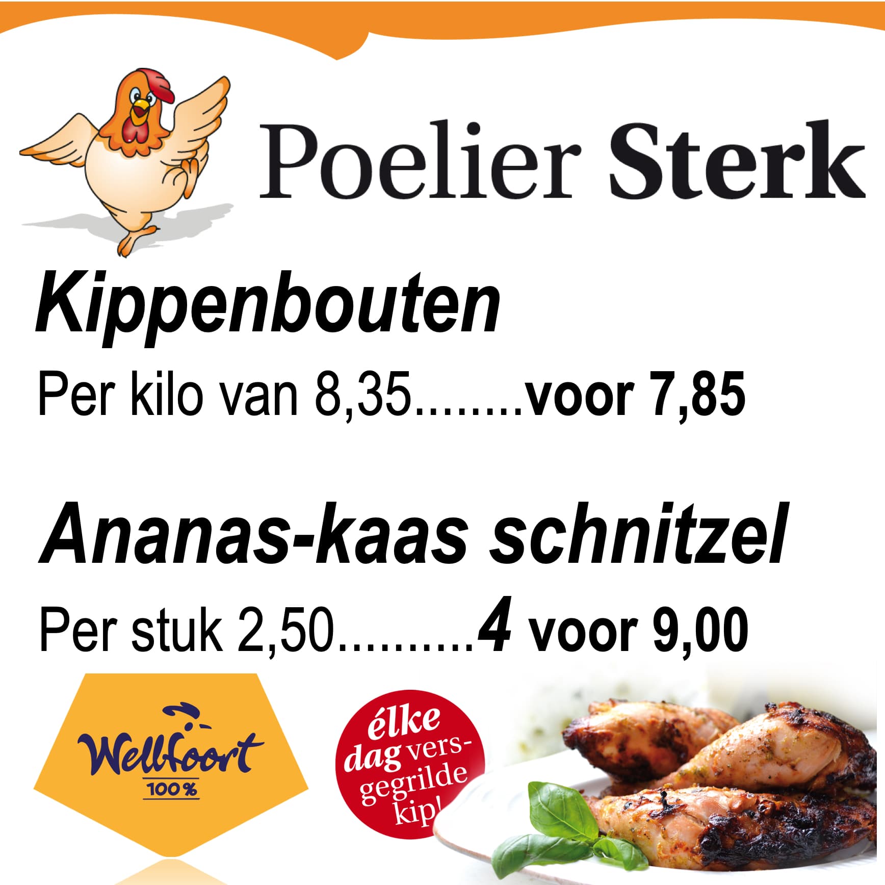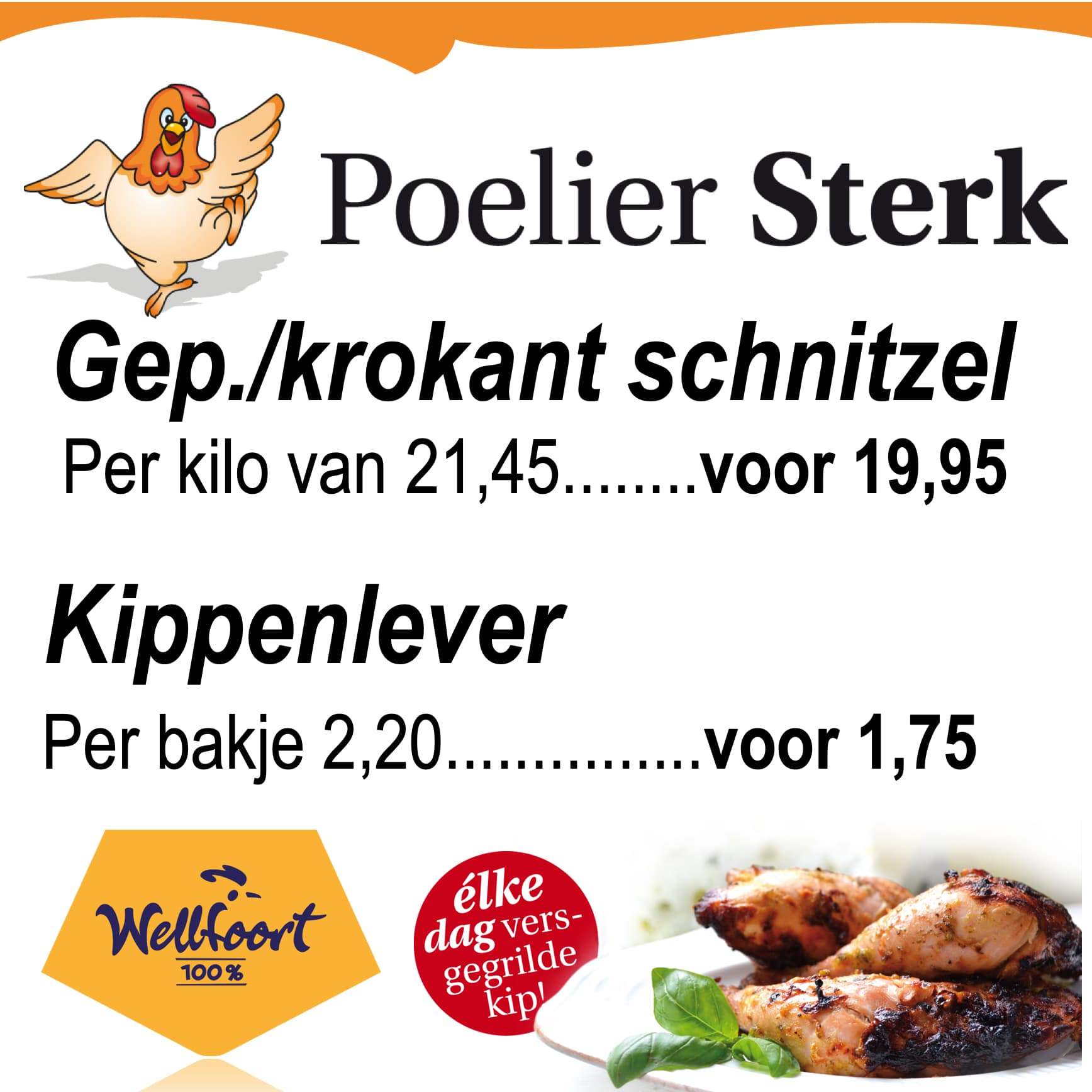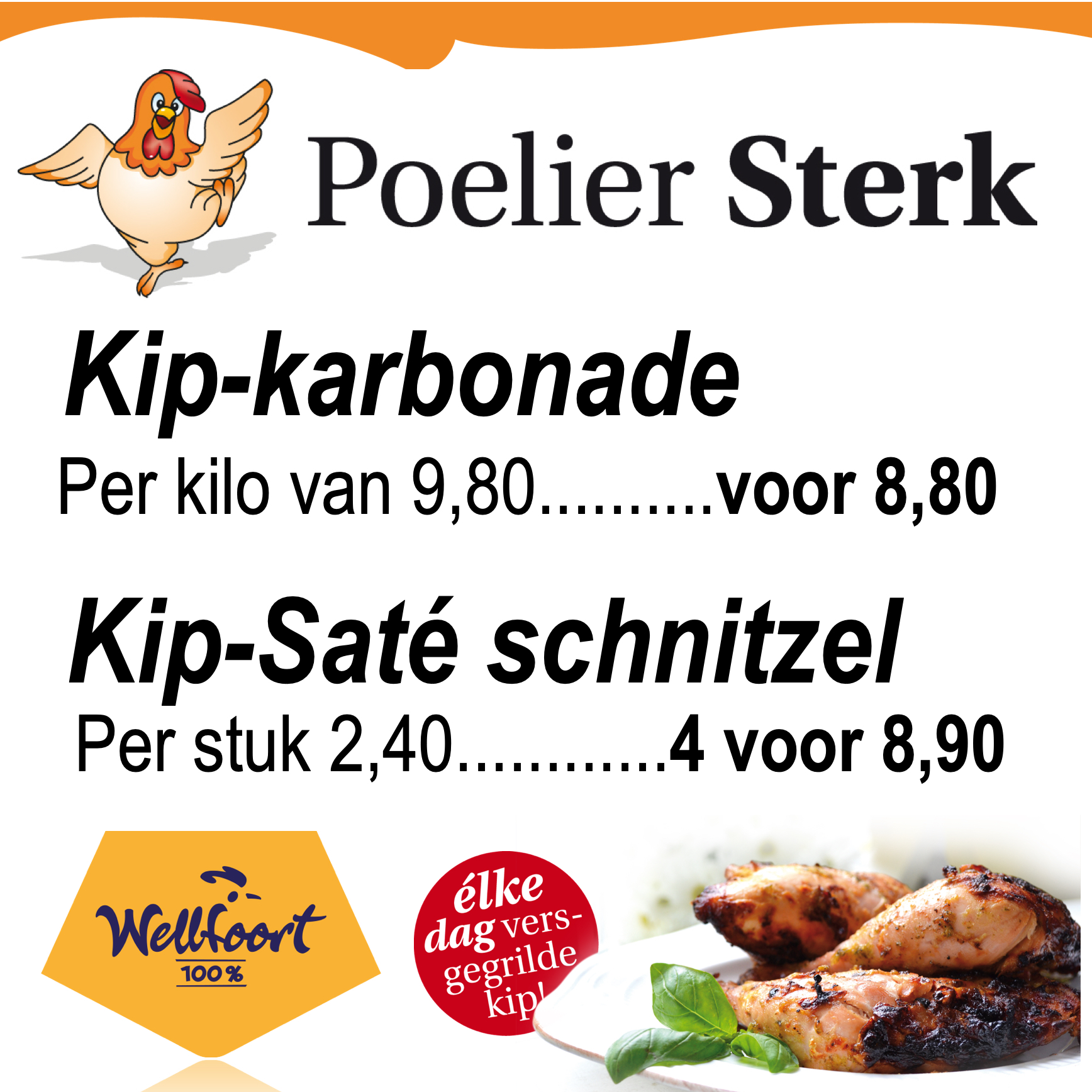 Poelier Sterk is al ruim 50 jaar een “begrip in kip” in Katwijk en staat sinds jaar en dag bekend om zijn bijzondere kwaliteit in wild & gevogelte. Poeliersbedrijf Sterk is in 1972 gestart door dhr. Sterk waarna zijn zoon Kees vanaf 1985 de spreekwoordelijke scepter zwaaide. In september 2011 namen Kees en Mirjam Haasnoot het bedrijf over. Kwaliteit staat hoog in het vaandel bij Kees en Mirjam.
